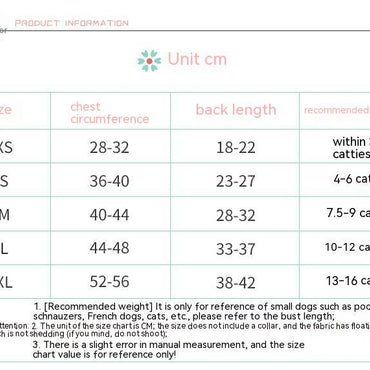 Size: XS-about 1.00 kg-1.50 kg, S-about 2.00 kg-3.00 kg, M-about 3.50 kg-4.00 kg, L-about 5.00 kg-6.00 kg, XL-about 7.00 kg-9.00 kg
